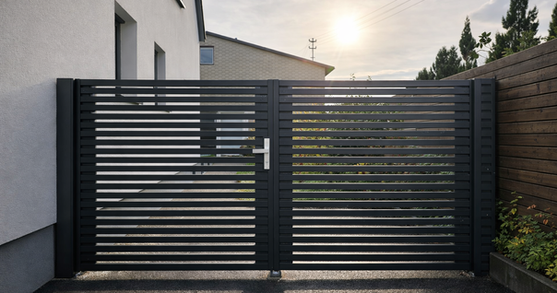 Der Aluminiumzaun ECLIPSE überzeugt durch sein modernes, horizontales Lamellendesign und bietet hohen Sichtschutz bei klarer, eleganter Optik. Gefertigt aus hochwertigem, pulverbeschichtetem Aluminium ist er langlebig, witterungsbeständig und nahezu wartungsfrei. Ideal kombinierbar mit passenden Schiebe- oder Gehtoren – perfekt für moderne Wohnhäuser.