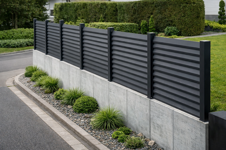 STELLAR ist ein moderner Aluminium-Sichtschutzzaun mit klaren, horizontalen Linien. Die geschlossene Ausführung bietet hohe Privatsphäre und ein ruhiges, elegantes Erscheinungsbild. Dank hochwertigem Aluminium ist das Modell langlebig, pflegeleicht und witterungsbeständig. Ideal für moderne Wohnhäuser, Gärten und Terrassen – optional kombinierbar mit Schiebe- oder Gehtor.